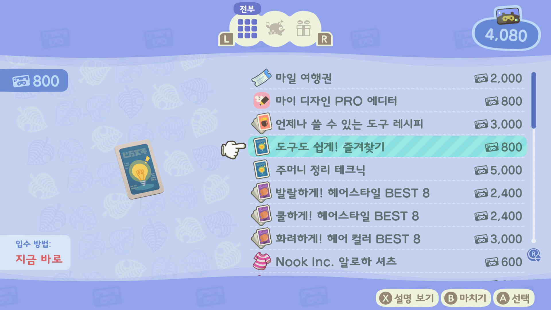 2. 도구도 쉽게! 즐겨찾기 800 마일리지로 구매합니다.